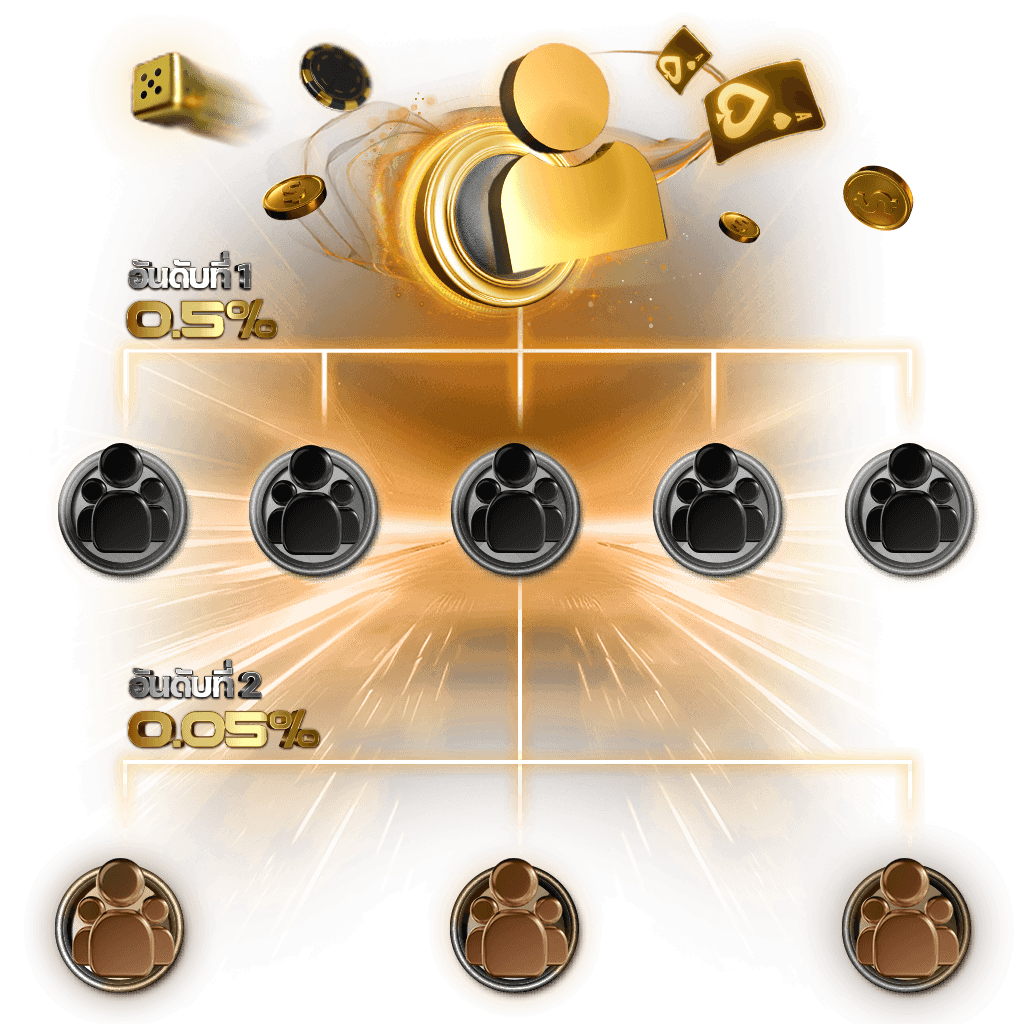 • หากลูกข่ายของท่านมีการเดิมพัน บาคาร่า/สล็อต/กีฬา เมื่อมียอดเดิมพันไม่ว่าจะได้หรือเสีย ระบบจะคิดค่าคอมมิชชั่นให้ท่าน 0.5% โดยอัตโนมัติทันที แต่ท่านต้องกดรับค่าคอมมิชชั่นก่อน จึงจะสามารถรับโบนัสได้